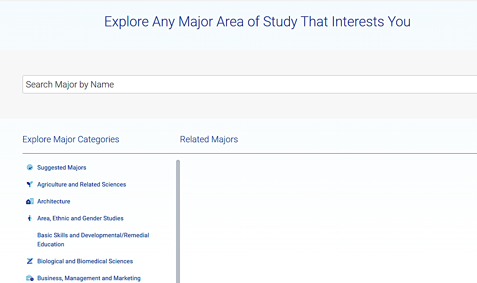 Related Majors appear. You go down the list. Keep looking until you find the right major. For example, Counselor Education – School Counseling and Guidance Services.