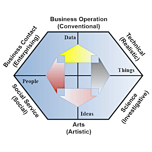 Source: Dr. John L. Holland (1985) created Holland Code Career Model, Holland Hexagon Model or Holland Codes.