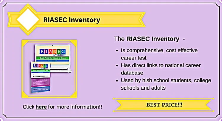 The RIASEC/ Holland Code inventory, a quick and easy assessment, is perfect for job seekers who have little time to spend on testing and career exploration.