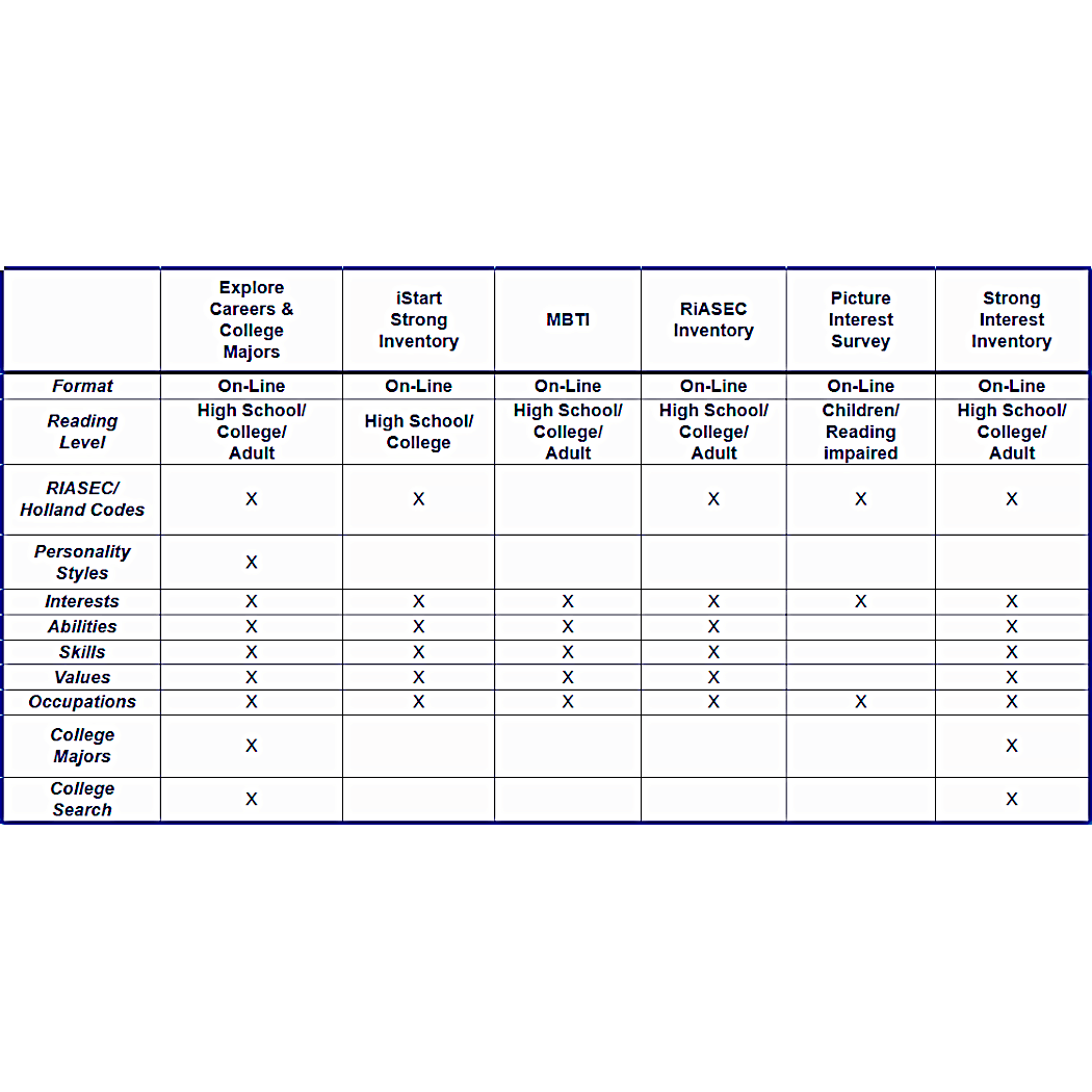 Here is a table that explains the differences in the career tests!