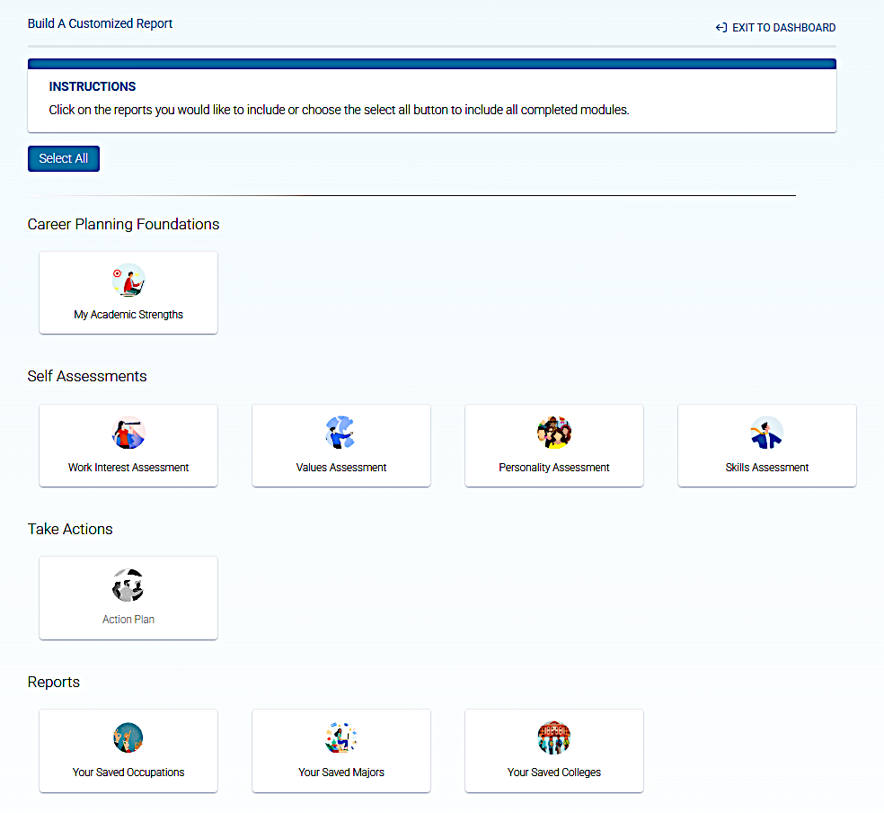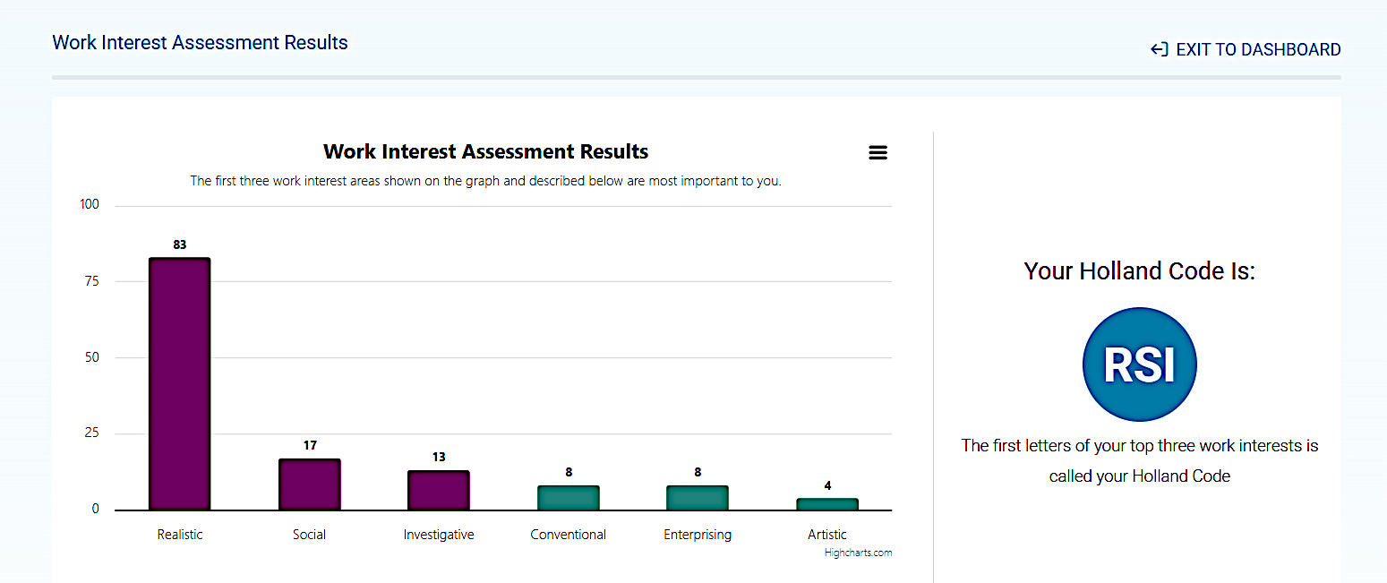 The Dashboard is the control center of the Explore Careers and College Major System.